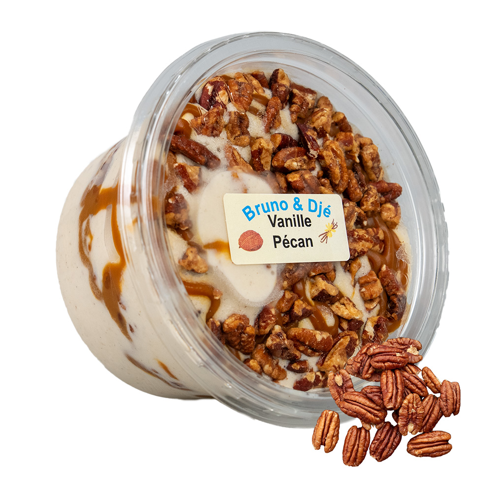 Retrouvez notre glace gourmande à la vanille noix de pécan en format 500ml à partager !